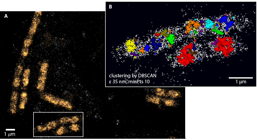 [2] Endesfelder, U., Finan, K., Holden, S. J., Cook, P. R., Kapanidis, A. N., & Heilemann, M. (2013). Multiscale spatial organization of RNA polymerase in Escherichia coli. Biophysical journal, 105(1), 172-181.